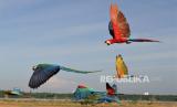 REPUBLIKA.CO.ID, KENDARI -- Komunitas Free Fly Kendari melatih burung macaw di sekitar Teluk Kendari, Kendari, Sulawesi Tenggara, Kamis (15/4). Komunitas burung endemik Amerika Selatan ini terus menjamur.