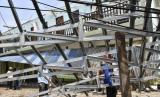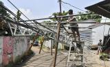 Warga memperbaiki atap rumah yang rusak akibat angin puting beliung di Jatimurni, Bekasi, Jawa Barat, Kamis (15/4). Menurut warga, angin puting beliung yang terjadi pada (14/4/2021) pukul 16.00 WIB merusak 10 rumah di lingkungan tersebut. (FOTO : ANTARA / Fakhri Hermansyah)