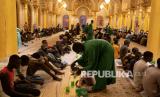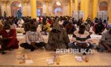 REPUBLIKA.CO.ID, DAKAR -- Umat Muslim berbuka puasa pada awal bulan suci Ramadhan 1442 Hijriyah di Masjid Massalikul Jinaan di Dakar, Senegal, Rabu (14/4).