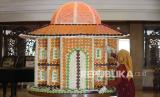 REPUBLIKA.CO.ID, SOLO -- Karyawan menyelesaikan proses pembuatan replika masjid berbahan makanan tradisional rengginang di The Sunan Hotel, Solo, Jawa Tengah, Jumat (16/4/2021). Replika masjid yang berukuran diameter 200 cm dan tinggi 180 cm tersebut dibuat dengan menggunakan 20 kilogram rengginang dalam rangka memeriahkan datangnya bulan Ramadhan.