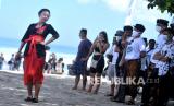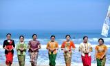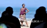 REPUBLIKA.CO.ID, BADUNG -- Model memperagakan busana kebaya di Pantai Kuta, Badung, Bali, Jumat (16/4). Peragaan busana kebaya tersebut dilakukan untuk menyambut peringatan Hari Kartini serta mempromosikan kebaya sebagai pakaian yang dapat digunakan untuk aktivitas sehari-hari sebagai upaya melestarikan busana kebaya.