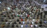 REPUBLIKA.CO.ID, SURABAYA -- Umat Islam menunaikan shalat Jumat pertama bulan Ramadhan 1442 H di Masjid Al Akbar Surabaya, Jawa Timur, Jumat (16/4). Pelaksanaan shalat Jumat di masjid berkapasitas normal 50 ribu orang tersebut tetap menerapkan protokol kesehatan pencegahan penularan dan penyebaran COVID-19 secara ketat.