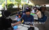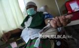 Dokter dari PMI memeriksa tekanan darah calon pendonor darah di kompleks Masjid Raya Al-Musyawarah, Kelapa Gading, Jakarta Utara, Jumat (16/4/2021). Donor darah selepas shalat Jumat di kompleks masjid tersebut bertujuan untuk menjaga stok darah di bulan Ramadhan sekaligus edukasi bahwa donor darah tidak akan membatalkan puasa. (FOTO : Antara/Sigid Kurniawan)