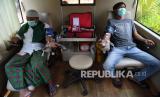 Warga menunggu giliran untuk mendonorkan darahnya di mobil donor darah PMI di kompleks Masjid Raya Al-Musyawarah, Kelapa Gading, Jakarta Utara, Jumat (16/4/2021). Donor darah selepas shalat Jumat di kompleks masjid tersebut bertujuan untuk menjaga stok darah di bulan Ramadhan sekaligus edukasi bahwa donor darah tidak akan membatalkan puasa. (FOTO : ANTARA/Sigid Kurniawan)