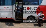 REPUBLIKA.CO.ID, JAKARTA -- Warga mendonorkan darahnya di mobil donor darah PMI di kompleks Masjid Raya Al-Musyawarah, Kelapa Gading, Jakarta Utara, Jumat (16/4/2021). Donor darah selepas shalat Jumat di kompleks masjid tersebut bertujuan untuk menjaga stok darah di bulan Ramadhan sekaligus edukasi bahwa donor darah tidak akan membatalkan puasa.