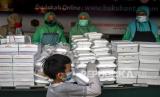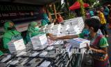 REPUBLIKA.CO.ID, JAKARTA -- Seorang bocah dengan mengenakan masker mengambil makanan berbuka puasa gratis di Jalan Cempaka Putih Tengah, Jakarta, Jumat (16/4/2021). Sekitar 400-600 paket takjil yang merupakan donasi dari warga dan perusahaan sekitar dibagikan secara gratis selama bulan Ramadhan tahun ini.