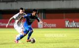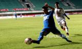 Gelandang Persib Febri lepas dari kawalan bek PSS Aaron Evan pada pertandingan Semifinal Pertama Piala Menpora 2021 di Stadion Maguwoharjo, Sleman, Yogyakarta, Jumat (16/4) malam. Pada pertandingan Semifinal pertama ini Persib berhasil mengalahkan PSS 2-1. (FOTO : Wihdan Hidayat / Republika)