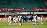 Pemain Persib merayakan kemenangan usai laga melawan PSS pada pertandingan Semifinal Pertama Piala Menpora 2021 di Stadion Maguwoharjo, Sleman, Yogyakarta, Jumat (16/4) malam. Pada pertandingan Semifinal pertama ini Persib berhasil mengalahkan PSS 2-1. (FOTO : Wihdan Hidayat / Republika)