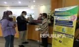 Direktur Utama PT Bank Syariah Bukopin (BSB) Dery Januar (kedua kiri) dan Manajer Bisnis BSB Dina Refina (kiri) berbincang dengan nasabah yang menabung di BSB KB Banda Aceh, Aceh, Jumat (16/4/2021). PT Bank KB Bukopin membuka layanan syariah bank umum di Provinsi Aceh sebagai implementasi dan menyukseskan Peraturan Daerah (Qanun) Aceh nomor 11/2018 tentang Layanan Keuangan Syariah (LKS). (FOTO : Antara/Irwansyah Putra)