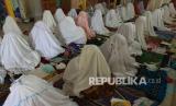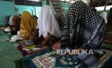 REPUBLIKA.CO.ID, ACEH BARAT -- Jamaah suluk menutupi kepalanya dengan selendang dan surban saat mengikuti zikir di Pondok Pesantren Nurul Huda, Desa Reusak, Samatiga, Aceh Barat, Aceh, Sabtu (17/4). Aktivitas ibadah suluk (menempuh jalan spritual menuju Allah) yang lazim dilaksanakan pada bulan Ramadhan tersebut diikuti warga berusia antara 28 tahun sampai 96 tahun dengan tujuan untuk memohon ampunan, membersihkan hati dan mendekatkan diri kepada Allah SWT.