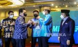 REPUBLIKA.CO.ID, JAKARTA -- Ketua Umum Masyarakat Ekonomi Syariah Erick Thohir memberikan sambutan usai melantik pengurus Masyarakat Ekonomi Syariah DKI Jakarta periode 2021-2023 di Jakarta, Sabtu (17/4). Selain melantik pengurus Masyarakat Ekonomi Syariah DKI Jakarta dilakukan juga penandatanganan kerjasama dengan enam perusahaan untuk mewujudkan ekonomi syariah yang terbuka dan berkelanjutan.