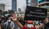 REPUBLIKA.CO.ID, JAKARTA -- Sejumlah peserta unjuk rasa bertajuk "Gowes for Democracy #SaveMyanmar" bersepeda di kawasan Bundaran HI, Jakarta, Sabtu (17/4/2021). Unjuk rasa tersebut sebagai bentuk kecaman atas kudeta ilegal dan menuntut agar militer Myanmar (Tatmadaw) segera mengakhiri kekerasan serta mengembalikan demokrasi sesuai dengan keinginan rakyat Myanmar.