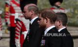 Pangeran Will dan Pangeran Harry mengukuti prosesi pemakaman Pangeran Philip di Istana Windsor Inggris, Sabtu (17/4). (FOTO : X80003)