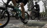 Sejumlah warga bersepeda di Jalan Ir H Juanda, Kota Bandung, Ahad (18/4). Meskipun sedang berpuasa, sejumlah warga tetap berolahraga untuk menjaga vitalitas tubuh serta menjaga agar tubuh tetap bugar. Foto: Republika/Abdan Syakura (FOTO : REPUBLIKA/ABDAN SYAKURA)