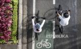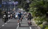 REPUBLIKA.CO.ID, BANDUNG -- Warga bersepeda di Jalan Ir H Juanda, Kota Bandung, Ahad (18/4). Meskipun sedang berpuasa, sejumlah warga tetap berolahraga untuk menjaga vitalitas tubuh serta menjaga agar tubuh tetap bugar.