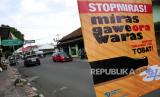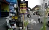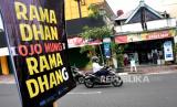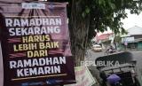 Pamflet nasihat dipasang di tepi jalan Ibu Ruswo, Yogyakarta, Ahad (18/4). Sejumlah pamflet berisi nasihat dan pengingat dipasang menyambut Ramadhan 1442H. (FOTO : Wihdan Hidayat / Republika)