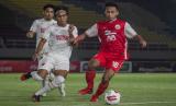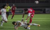 Pemain Persija Jakarta Osvaldo Haay (kanan) berebut bola dengan pemain PSM Makassar Erwin Gutawa (kiri) pada Pertandingan Semifinal Leg ke-2 Piala Menpora di Stadion Manahan, Solo, Jawa Tengah, Ahad (18/4/2021). (FOTO : ANTARA/Mohammad Ayudha)