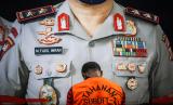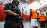 Tersangka dihadirkan saat pengungkapan kasus narkoba di Polda Metro Jaya, Jakarta, Senin (19/4/2021). Direktorat Reserse Narkoba Polda Metro Jaya mengamankan sembilan orang tersangka kasus narkoba dengan barang bukti berupa sabu 6.339 gram, ganja 3.000 gram dan 5.385 butir ekstasi (FOTO : ANTARA/Rivan Awal Lingga)