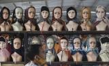 Seorang pedagang berdiri di depan jilbab yang dijualnya di Jembatan Penyeberangan Multiguna (JPM) Tanah Abang di Jakarta, Senin (19/4/2021). Pedagang mengaku jilbab dengan harga Rp15.000 hingga Rp30.000, penjualannya meningkat hingga 15 potong di bulan Ramadhan dibandingkan bulan sebelumnya. (FOTO : M RISYAL HIDAYAT/ANTARA )