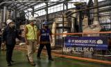 REPUBLIKA.CO.ID, BANDUNG -- Gubernur Jawa Barat Ridwan Kamil (tengah) berjalan saat mengunjungi pabrik PT Namasindo Plas di Batujajar, Kabupaten Bandung Barat, Selasa (20/4).