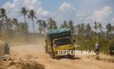 REPUBLIKA.CO.ID, BANJAR -- Truk melintas di Jalan Gubernur Syarkawi yang rusak di Kabupaten Banjar, Kalimantan Selatan, Selasa (20/4/2021).