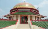 Jamaah melaksanakan shalat di Masjid Babah Alun, Cilandak, Jakarta, Selasa (20/4). Masjid tersebut dibangun oleh Muhammad Jusuf Hamka yang merupakan mualaf keturunan Tionghoa. Bangunan bernuansa oriental tersebut merupakan hasil akulturasi dari tiga budaya yakni Tionghoa, Arab, dan Betawi, Arab dan Betawi. Hal ini terlihat dari ukiran dan ornamen yang bergaya mandarin ditambah dengan perpaduan warna merah, kuning dan hijau yang membuatnya sekilas tampak seperti kuil atau klenteng. Masjid tersebut menjadi alternatif tempat wisata religi di tengah bulan Ramadhan ini. (FOTO : Republika/Thoudy Badai)