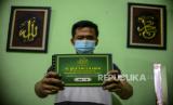 Pekerja menunjukan Al-Quran braille di Yayasan Raudlatul Makfufin, Serpong, Tangerang Selatan, Selasa (20/4). Selama bulan Ramadhan pembuatan Al-Quran Braille mengalami peningkatan permintaan mencapai dua kali lipat yang dikirim ke seluruh Indonesia dan mancanegara seperti Singapura dan Afrika Selatan. Republika/Putra M. Akbar (FOTO : Republika/Putra M. Akbar)
