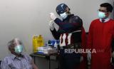 Tenaga medis pun berimprovisasi termasuk mengenakan costum play super hero untuk mencairkan suasana. Berikut suasana vaksinasi massal Covid-19 di beberapa kota.