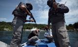 REPUBLIKA.CO.ID, MINAHASA UTARA -- Anggota Badan Keamanan Laut (Bakamla) menggelar latihan mengevakuasi korban kecelakaan di laut di pesisir perairan Minahasa Utara, Sulawesi Utara, Selasa (20/4/2021). Latihan operasi keselamatan dan keamanan laut tersebut dilaksanakan untuk melatih kesiapan personel dalam menjaga lautan, juga sebagai langkah antisipatif menangani kecelakaan laut yang bisa terjadi akibat dampak cuaca dan gelombang tinggi.