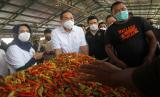 Menteri Perdagangan Muhammad Lutfi (tengah) didampingi Wakil Gubernur Jawa Timur Emil Elestianto Dardak (kedua kanan) berbincang dengan pedagang cabai merah saat mengunjungi Pasar Induk Osowilangun, Surabaya, Jawa Timur, Selasa (20/4/2021). Kunjungan Menteri Perdagangan tersebut dalam rangka untuk melihat secara langsung ketersediaan stok bahan kebutuhan pokok dan memastikan harga pangan normal. (FOTO : ANTARA/Moch Asim)