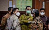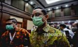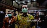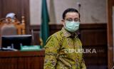 Mantan Menteri Sosial Juliari Peter Batubara berjalan usai menjalani sidang perdana pembacaan surat dakwaan terkait kasus dugaan korupsi dana paket bantuan sosial Covid-19 untuk wilayah Jabodetabek tahun 2020 di Pengadilan Tipikor, Jakarta, Rabu (21/4). Jaksa penuntut umum (JPU) Komisi Pemberantasan Korupsi (KPK) mendakwa mantan Menteri Sosial Juliari Peter Batubara menerima suap sebesar Rp 32,4 miliar dari para pengusaha yang menggarap proyek pengadaan bantuan sosial untuk penanganan Covid-19. Republika/Thoudy Badai (FOTO : Republika/Thoudy Badai)