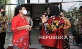 Wakil Ketua KPK Lili Pintauli Siregar (kanan) mengantar Menteri Pemberdayaan Perempuan dan Perlindungan Anak (PPPA) Gusti Ayu Bintang Darmawati (kiri) usai melakukan penandatangan nota kesepahaman tentang penguatan upaya pemberantasan tindak pidana korupsi di Gedung KPK Merah Puith, Jakarta, Rabu (21/4/2021). Penandatanganan MoU yang bertepatan dengan peringatan Hari Kartini ini, diharapkan dapat semakin meningkatkan peran dan kapasitas perempuan karena masih dianggap sebagai figur sentral dalam memberikan pendidikan moral sebagai roda penggerak pencegahan korupsi dari lingkup terkecil yaitu keluarga. (FOTO : Antara/Reno Esnir)
