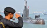 FOTO ARSIP- Anggota TNI AL melakukan penghormatan ketika kapal selam KRI Nanggala-402 tiba di Dermaga Koarmatim, Ujung, Surabaya, Jatim, Senin (6/2/2012). Kapal selam tersebut kembali bergabung dengan TNI AL usai menjalani perbaikan menyeluruh di galangan kapal Daewoo Shipbuilding & Marine Engineering, Okpo, Korea Selatan. ANTARA FOTO/M Risyal Hidayat/rwa. (FOTO : ANTARAFOTO)