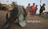 Sejumlah anak bermain permainan tradisional boi-boian saat ngabuburit dengan memainkan permainan (dolanan) tradisional anak di Kampung Dolanan, Surabaya, Jawa Timur, Rabu (21/4/2021). Kegiatan ngabuburit dolanan tersebut bertujuan untuk melestarikan permainan tradisional sekaligus menunggu datangnya waktu berbuka puasa. (FOTO : ANTARA FOTO)
