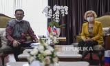 REPUBLIKA.CO.ID, JAKARTA -- Wakil Ketua MPR Fadel Muhammad menerima kunjungan Duta Besar Rusia untuk Indonesia Lyudmila G. Vorobyova di Kompleks Parlemen, Senayan, Jakarta, Rabu (21/4). Pertemuan tersebut diantaranya membahas pengiriman vaksin COVID-19 Sputnik V dari Rusia yang akan digunakan dalam program Vaksinasi Gotong Royong.