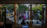 REPUBLIKA.CO.ID, PALU -- Pengunjung melintasi salah satu karya foto dalam Pameran "Besolek" di Galeri Ruang Dua Delapan (RDL), Palu, Sulawesi Tengah, Rabu (21/4/2021). Pameran foto bertema "Besolek" karya fotografer perempuan Suzanna Dorothea itu difasilitasi oleh Gerakan Nasonal Pesona Indonesia (Genpi) Sulteng bekerja sama dengan Putri Tenun Indonesia dalam rangka memperingati Hari Kartini dan berlangsung hingga 24 April 2021