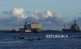 REPUBLIKA.CO.ID, BANYUWANGI -- KRI Dr Soeharso-990 sandar di Pelabuhan Tanjung Wangi Banyuwangi, Jawa Timur, Rabu (21/4/2021). KRI Dr Soeharso 990 merupakan salah satu KRI yang dilibatkan dalam latihan penembakan terpedo bersama KRI Nanggala 402 yang hilang kontak di perairan utara Bali.