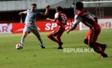 Gelandang Persija Rohit Chand menghadang bek Persib Nick Kuipers saat pertandingan Final Pertama Piala Menpora 2021 di Stadion Maguwoharjo, Sleman, Yogyakarta, Kamis (22/4). Pada babak pertama Persib tertinggal 0-2 dari Persija. Gol dicetak oleh Braif Fatari dan Tufik Hidayat. (FOTO : Wihdan Hidayat / Republika)