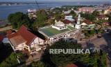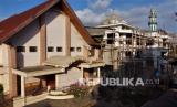 REPUBLIKA.CO.ID, KENDARI -- Foto udara Gereja Pantekosta Bukit Zaitun (kiri) dan Masjid Dakwah Wanita (kanan) di Kendari, Sulawesi Tenggara, Kamis (22/4). Masjid Dakwah Wanita dan Gereja Pantekosta Bukit Zaitun merupakan dua rumah ibadah yang letaknya hanya dipisahkan oleh sekat dinding karena dibangun bersamaan pada tahun 1960 sebagai cerminan toleransi antara umat beragama.