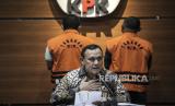 Ketua KPK Firli Bahuri menyampaikan keterangan pers di Gedung Merah Putih KPK, Jakarta, Kamis (22/4/2021). KPK menetapkan penyidik KPK Stepanus Robin Pattuju dan pengacara Maskur Husain sebagai tersangka dalam kasus dugaan tindak pidana korupsi penerimaan hadiah atau janji oleh penyelenggara negara terkait penanganan perkara Wali Kota Tanjung Balai Tahun 2020-2021. (FOTO : Antara/Dhemas Reviyanto)