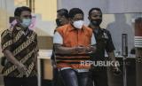 Penyidik KPK Stepanus Robin Pattuju digiring petugas untuk mengikuti konferensi pers usai menjalani pemeriksaan di Gedung Merah Putih KPK, Jakarta, Kamis (22/4/2021). KPK menetapkan penyidik KPK Stepanus Robin Pattuju dan pengacara Maskur Husain sebagai tersangka dalam kasus dugaan tindak pidana korupsi penerimaan hadiah atau janji oleh penyelenggara negara terkait penanganan perkara Wali Kota Tanjung Balai Tahun 2020-2021. (FOTO : Antara/Dhemas Reviyanto)