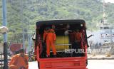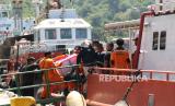 REPUBLIKA.CO.ID, BANYUWANGI -- Tim Basarnas menaikan peralatan ke atas KN SAR Antasena di Pelabuhan Tanjung Wangi Banyuwangi, Jawa Timur, Jumat (23/4/2021).