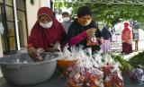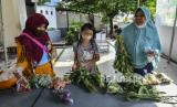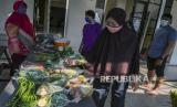REPUBLIKA.CO.ID, Warga mengambil sayuran saat kegiatan bazar sayuran gratis di Masjid Ar Ruhama, Jati Padang, Jakarta, Minggu (25/4/2021). Bazar sayuran gratis tersebut digelar sebagai bentuk aksi solidaritas Masjid Ar Ruhama dalam membantu warga di sekitarnya yang terkena dampak pandemi COVID-19.