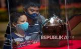 Dua bocah mengamati salah satu koleksi dalam Pameran Artefak Nabi Muhammad SAW di Jakarta Islamic Center, Koja, Jakarta, Sabtu (24/4/2021). Pameran yang berlangsung hingga 3 Mei 2021 tersebut memamerkan 35 barang peninggalan Nabi Muhammad dan para sahabatnya, mulai dari perlengkapan perang, tongkat hingga janggut dan rambut Nabi. Koleksi artefak tersebut dikumpulkan dari berbagai tempat bersejarah, antara lain Mesir, Kairo, Mekah dan Madinah. (FOTO : Antara/Aditya Pradana Putra)
