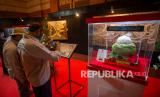 Sejumlah pengunjung mengamati salah satu koleksi dalam Pameran Artefak Nabi Muhammad SAW di Jakarta Islamic Center, Koja, Jakarta, Sabtu (24/4/2021). Pameran yang berlangsung hingga 3 Mei 2021 tersebut memamerkan 35 barang peninggalan Nabi Muhammad dan para sahabatnya, mulai dari perlengkapan perang, tongkat hingga janggut dan rambut Nabi. Koleksi artefak tersebut dikumpulkan dari berbagai tempat bersejarah, antara lain Mesir, Kairo, Mekah dan Madinah. (FOTO : Antara/Aditya Pradana Putra)
