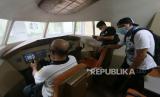 Sejumlah warga berfoto di kokpit replika pesawat di asrama Haji di Kota Gorontalo, Gorontalo, Minggu (25/4/21). Asrama Haji yang juga menjadi objek wisata religi tersebut ramai menjadi lokasi ngabuburit warga. (FOTO : ANTARA/Adiwinata Solihin\)