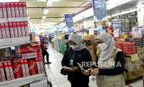 Petugas BPOM memantau potensi pelanggaran pada  bahan makanan di pusat perbelanjaan Yogyakarta, Senin (26/4). Pengawasan dan pemeriksaan dilakukan oleh BPOM Yogyakarta saat Ramadhan dan Idul Fitri 2021. Pengawasan ini untuk mewaspadai potensi bahaya produk pangan yang tidak memenuhi ketentuan (TMK). Pangan tanpa izin edar, pangan kadaluarsa, pangan rusak, dan penyalahgunaan bahan berbahaya menjadi titik fokus pengawasan. (FOTO : Wihdan Hidayat / Republika)