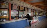 Petugas beraktivitas di loket pembelian tiket di Terminal Kampung Rambutan, Jakarta, Senin (26/4). Jumlah penumpang di Terminal Kampung Rambutan mengalami penurunan hingga 40 persen menyusul adanya adendum Surat Ederan Satuan Tugas Penanganan COVID-19 tentang pengetatan persyaratan Pelaku Perjalanan Dalam Negeri (PPDN) selama H-14 peniadaan mudik atau 22 April - 2 Mei 2021 hingga H+7 peniadaan mudik 18 Mei - 24 Mei 2021. Republika/Thoudy Badai (FOTO : Republika/Thoudy Badai)
