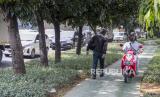 REPUBLIKA.CO.ID, JAKARTA -- Pengendara sepeda motor melintas di atas trotoar kawasan Daan Mogot, Jakarta Barat, Senin (26/4/2021).