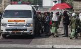 Kendaraan yang membawa jenazah Kepala BIN Daerah (Kabinda) Papua Mayjen Anumerta I Gusti Putu Danny Karya Nugraha tiba di kompleks Taman Makam Pahlawan Kalibata, Jakarta, Selasa (27/4/2021). Kabinda Papua tersebut gugur akibat tertembak oleh Kelompok Separatis dan Teroris (KST) Papua saat bertugas di Kampung Dambet, Distrik Beoga, Kabupaten Puncak, Minggu (25/4/2021). (FOTO : ANTARA/Muhammad Adimaja)